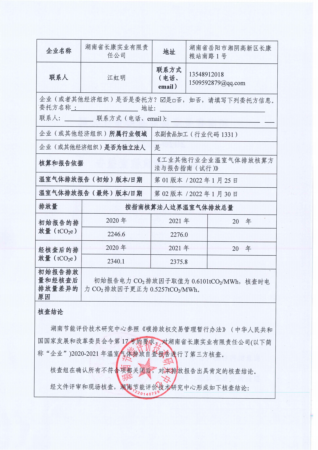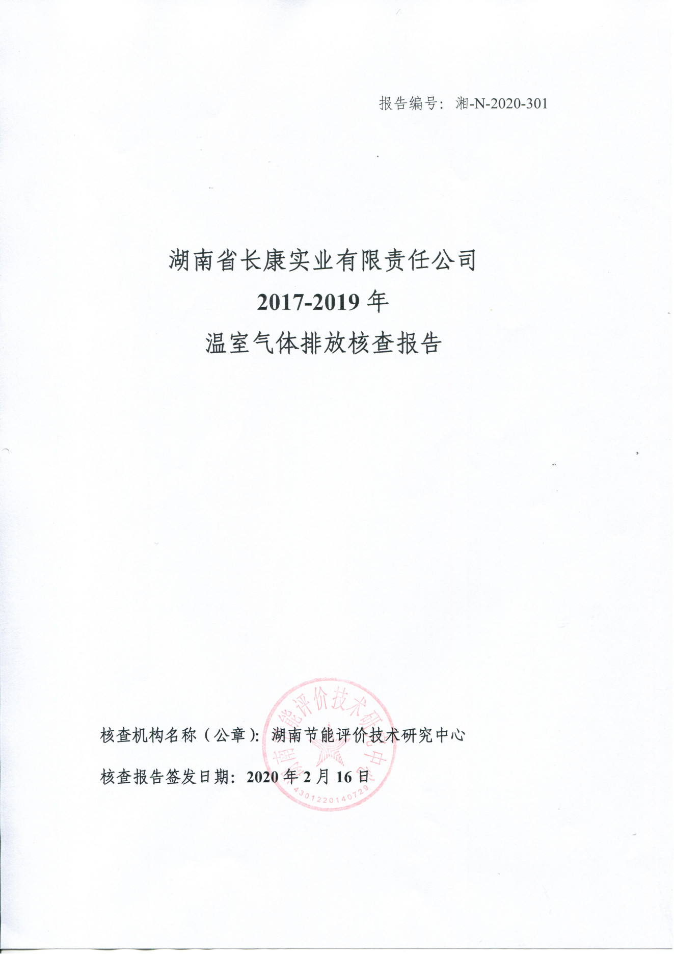 湖南省長(zhǎng)康實(shí)業(yè)有限責(zé)任公司2017-2021年企業(yè)溫室氣體排放第三方聲明